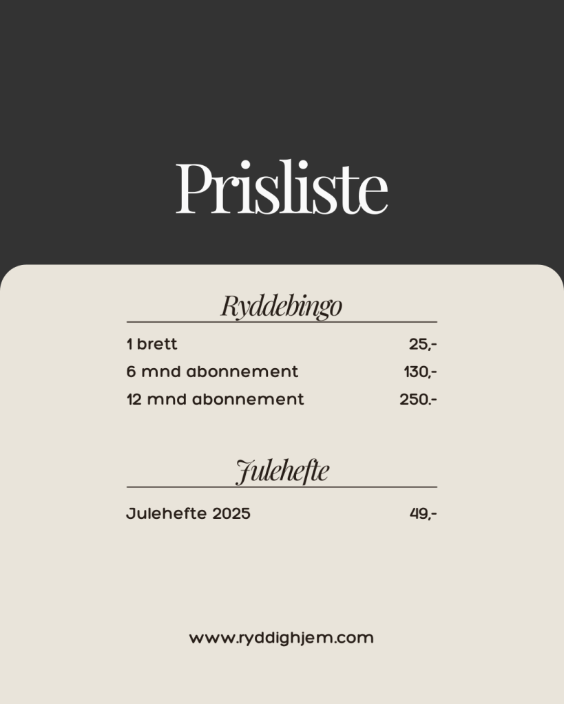 Her finner du enkle og inspirerende hjelpemidler som gjør det lettere å skape orden i hverdagen. Enten du vil ha små oppgaver som gir rask effekt, eller praktiske guider som hjelper deg steg for steg, får du verktøyene du trenger til et ryddigere hjem – og mer ro i sinnet.